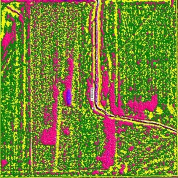 Wetness Potential Maps are a great tool for growers to visually see the locations that water will natural pool. The Optimum Drain locations are layered over an wetness potential map to better highlight the areas of the field that will be drained via Optimum Drainage maps